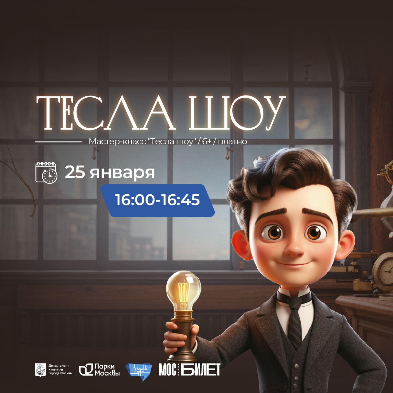 25 января в 16:00 ждем самых смелых на «Тесла шоу»! В программе секреты Николы Теслы и невероятные опыты: